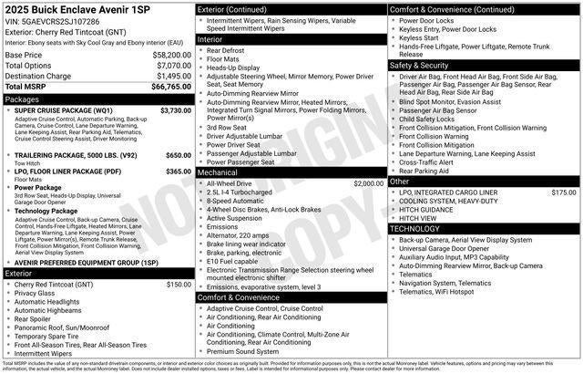 Buick 2025 Enclave Cherry Red Tintcoat 2.5L DOHC AWD